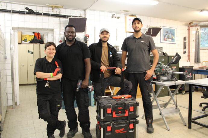 De technische dienst van Wolu-Facilities telt 4 personen en 1 afdelingschef waarvan een elektricien, een verwarmingsinstallateur, een afwerkingsspecialist en een polyvalent arbeider.